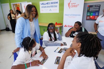 Many schools and communities are working to address youth mental health concerns by promoting mental health literacy and investing in trauma-informed healing practices, like restorative justice. Students’ space and environment are also proven to affect their mental well-being; however, many school buildings have old or deteriorating infrastructure, overcrowded spaces, or lack safe, accessible places for students to self-regulate or decompress. These spaces can hinder other efforts to address student mental health issues. Improving students’ learning environments is a central aspect of Heart of America’s mission. We know that having a fresh, welcoming space to learn in contributes to a student’s sense of self-worth. We’re focused on creating spaces that make students feel valued and prioritized, and we do this work with mental health in mind.